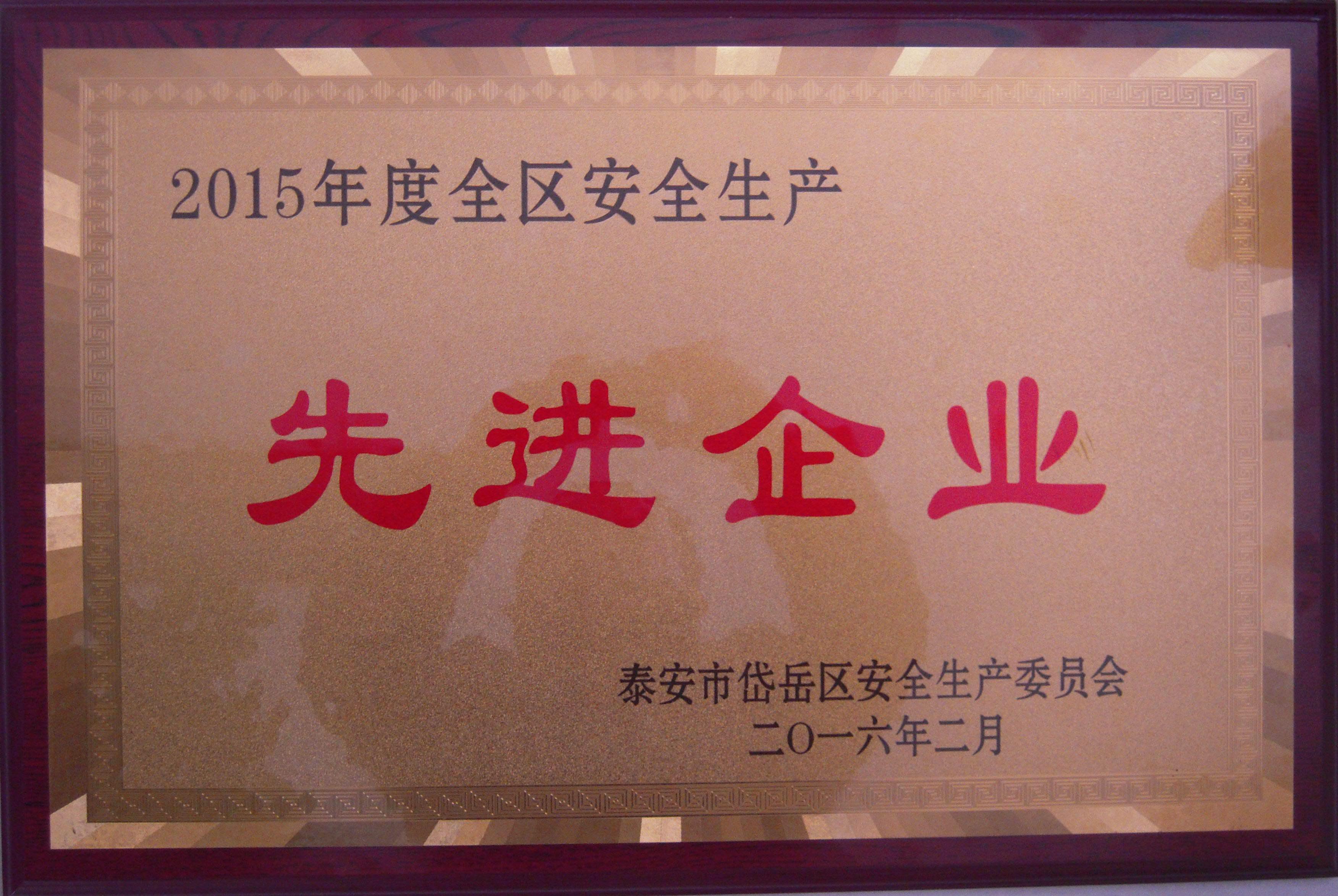 集團公司榮獲“2015年度全區安全生產先進企業”