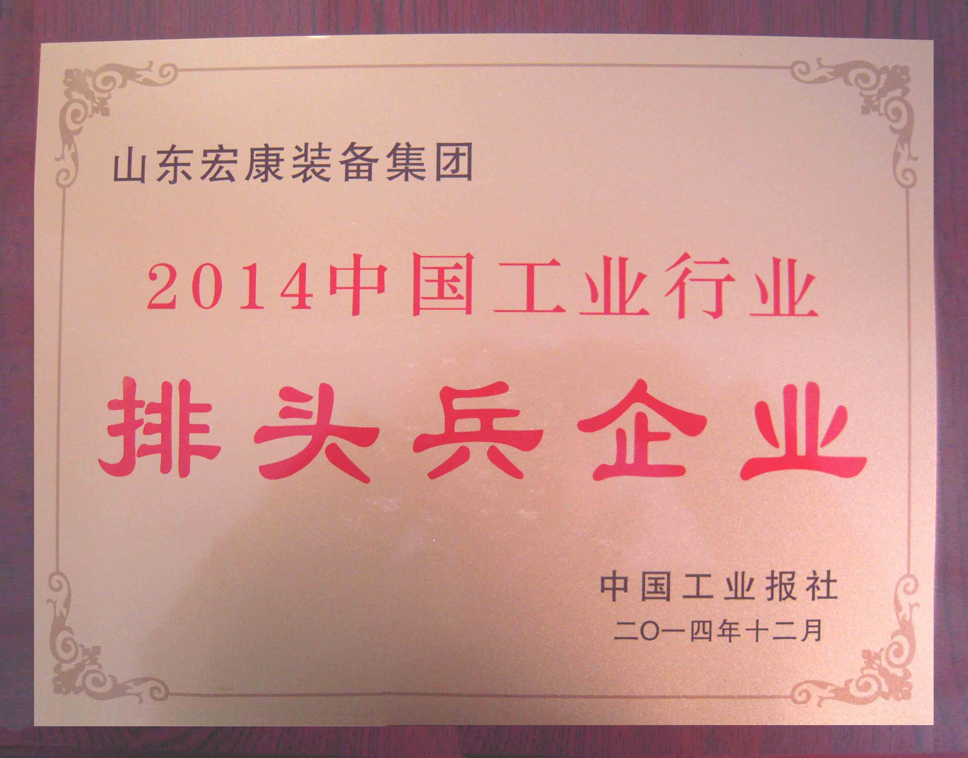“中國(guó)工業(yè)行業(yè)排頭兵”是由中國(guó)工業(yè)報(bào)社主辦的一項(xiàng)旨在推動(dòng)工業(yè)行業(yè)龍頭企業(yè)加快自主創(chuàng)新、提升核心競(jìng)爭(zhēng)力、推進(jìn)品牌建設(shè)、擴(kuò)大知名度的年度發(fā)布活動(dòng),表彰和鼓勵(lì)排頭兵企業(yè)在著力提升發(fā)展質(zhì)量和效益、促進(jìn)工業(yè)經(jīng)濟(jì)穩(wěn)定增長(zhǎng)發(fā)揮的表率作用和示范效應(yīng)。根據(jù)權(quán)威統(tǒng)計(jì)資料,通過專家委員會(huì)審議,經(jīng)公示后,最終確定山東宏康裝備集團(tuán)為2014中國(guó)金屬成形機(jī)床制造行業(yè)排頭兵企業(yè)。